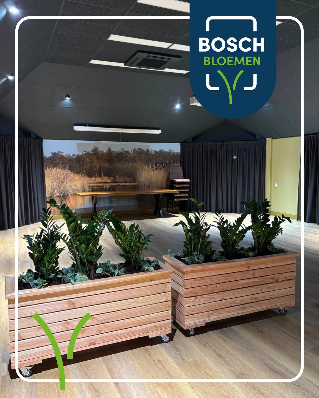 Afgelopen week zijn de bloembakken in het dorpshuis mooi opgevuld door Bosch Bloemen, met frisse, groene planten. De bakken staan nu in de kleine zaal, maar dankzij de wieltjes kunnen ze makkelijk verplaatst worden. Zo kunnen we ze bij vergaderingen, bijeenkomsten of feestjes in andere zalen ook gebruiken. Het zorg voor net dat beetje extra sfeer.
